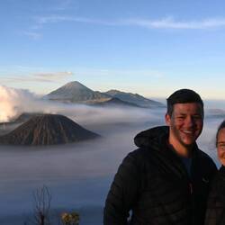Obwohl wir uns echt früh unter unsere zwei Wolldecken (mit Einhörnern!) kuschelten, wurde mit Schlaf nicht viel. Während Sven zeitweise wenigstens etwas einnickte, brachte Tamara kein Auge zu, da sie trotz Thermowäsche immernoch fror. Um 2.45 Uhr klingelte bereits der Wecker und um 3 Uhr düsten wir per Motorradtaxi zum Ausgangspunkt unserer Sonnenaufgangswanderung. Wir waren keine 100m gegangen, als wir bereits wieder auf Roman und Sarina traffen. Gemeinsam suchten wir uns einen ruhigen Spot zwischen den zwei völlig überlaufenen Viewpoints und dann hiess es warten, da wir viel zu früh dran waren. In guter Gesellschaft und mit Hampelmänner, brachten wir aber auch diese Wartezeit rum und durften einen wunderschönen Sonnenaufgang mit noch schönerem Panorama geniessen. Wir lassen an dieser Stelle einmal die Bilder sprechen... Anschliessend ging es wieder zurück und wir genossen in unserer Unterkunft ein leckeres Frühstück und gönnten uns eine heisse Dusche. Pausenlos packten wir gleich unsere Sachen und platzierten uns an der Sammelstelle des Gemeinschaftstaxis mit der Hoffnung bis am Abend wieder in Probolinggo zu sein, wo uns der Zug nach Surabaya, unserem Plan B bringen sollte. Von einem Einheimischen wurden wir informiert, dass das Taxi erst um 10 Uhr fahren würde und auch nur wenn sich genügend Passagiere finden lassen würden. Also warteten wie 2einhalb Stunden und freuten uns über jeden Tourist, der sich uns anschloss. Weniger toll war, als der gleiche Einheimische meinte, wir hätten auch einen Jeep nach Malang chartern können und dass auch noch zu einem guten Preis... Das Sammeltaxi oder wohl eher Schrottbus kam tatsächlich, jedoch waren wir immer noch zu wenige und der Fahrer drehte noch eine Extrarunde, um weitere zu finden und uns dadurch einen besseren Preis zu ermöglichen. Spoiler: Er fand zwar weitere Touris, einen besseren Preis gab es aber doch nicht. Nachdem unser Gepäck auf dem Dach festgezurrt worden war, ging es endlich Richtung Probolinggo. Leider nicht viel entspannter als bei der Hinfahrt, da das Lenkrad extrem viel Spiel hatte und es oft sehr eng wurde mit dem entgegenkommenden Verkehr. In Probolinggo wurden wir dann auch nicht beim Bahnhof, sondern beim Busterminal abgeladen, was so viel bedeutete wie ab ins nächste Bemo. Wenigstens hatte dieses faire Preise. Am Bahnhof angekommen, quartierten wir uns für die nächsten 5 Stunden im Warterraum auf zwei Stühlen. Um nicht einzuschlafen oder zu fest unter Rückenschmerzen zu leiden, bauten wir mehrere Snackpausen im benachbarten Shop ein. Tamara machte irgendwann noch einen Spaziergang durchs Quartier, da es aber nicht wirklich was Sehenwertes gab und sie übermüdet die "Hello Miss!" nicht mehr erwidern mochte, war auch sie bald zurück. Der Zug fuhr pünktlich ein und wir waren überrascht, dass die 3. Klasse dieses Mal noch luxuriöser war als das letzte Mal. Wieder zog an uns anfangs eine ländlich geprägte Umgebung vorbei, die gegen Ende aber gegen eine Grosstadtmetropole eingetauscht wurde. Da es mehrere Bahnhöfe gibt in Surabaya erforderte es nochmals etwas Konzentration unsererseits, was in unserem Zustand schon herausfordernd war. Wir managten es aber am richtigen Bahnhof auszusteigen und konnten unser Glück kaum fassen, als es direkt vor dem Bahnhof eine offizielle Haltestelle für Grab- und Gojek-Fahrer gab und wir uns nicht mit einer Taximafia auseinandersetzen mussten. Beim Standort unseres Hotels angekommen, erwartete uns jedoch die nächste Herausforderung, da es in einem riiieeesen Einkaufszentrum lag, dass natürlich so verwinkelt angelegt war, dass alle Shopaholics immer mehr kaufen, da sie nicht mehr aus dem Komplex rauskommen. Mithilfe der Security waren wir aber auch hier erfolgreich. Als wir unser Gepäck abgeladen hatten, gingen gleich wieder zurück in die Mall, den einen riesen Vorteil hat diese: einen Foodcourt.😋 Nach einer dampfenden Schüssel Ramen und ganz viel starrenden Blick später, machten wir noch einen Abstecher in den Supermarkt mit der Hoffnung für die immer noch hungrige Tamara einen Snack zu finden. Leider war nichts Passendes dabei, also suchten wir als Alternative einen Sushiladen. Endlich gefunden, folgte die Enttäuschung... Er war leider zu. So watschelte Tamara wieder zurück in den Supermarkt und Sven ging schon vor ins Zimmer. Tamara verlief sich auf dem Rückweg so dermassen, dass sie völlig übermüdet wie sie war, irgendwann einem Nervenzusammenbruch nahe war. Dank Googlemaps fand das verlorene Schaf, dann aber doch noch irgendwann seinen Stall und wir konnten endlich den bitter nötigen Schlaf in unseren bequemen und vor allem warmen Betten nachholen.Read more