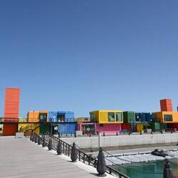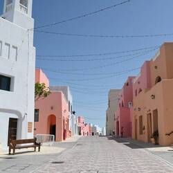 Nach der Tuchfühlung mit den Falken bestaunten wir noch etwas die potenten Rennkamele (die teuersten der Welt), bevor wir uns auf zum alten Hafen machten. Auf dem Weg dorthin mussten wir merken, dass ein 3km langer Spaziergang an der prallen Sonne und natürlich ohne Sonnencrème, nicht die allerbeste Entscheidung war, die wir bis anhin auf unserer Reise getroffen hatten. Vor allem eine Partei von uns beiden (und nein es ist nicht die typische😜) fing sich einen Sonnenbrand ein. So kam uns der heruntergekühlte und überdachte Fischmarkt mehr als recht. Und auch sonst war dieser echt beeindruckend! Noch nie hatten wir so einen luxuriösen Fischmarkt, inklusive Türöffner, lokalen wie exklusiven Meerestieren, niegelnagel neuen und sauberen Waagen und ohne den typischen Fischgeruch in der Nase und das Gewusel und Geschreie der Händler gesehen. Wieder etwas abgekühlt bewunderten wir den alten Hafen und fanden uns plötzlich in Griechenland wieder einfach in bunt, übertrieben sauber und inklusive Moschee. Das bunte Konzept zog sich auch an anderen Ecken weiter und so trafen wir als nächstes auf eine bunte Schiffscontainerstadt, welche, wenn man die Fassade des Fussballstadions betrachtet, wohl nur für die Fussball-WM hingestellt wurde. Vom Hafen ging es dann mit einer möglichst langen Metrofahrt, um uns wieder abzukühlen, ans Meer. Das Meer konnten wir zwar abgegrenzt durch eine Mauer betrachten, aber nicht erhofft mit einem Mocktail in der Hand geniessen. So erkundeten wir halt Katara Cultural Village, ein nur für kulturelle Zwecke errichtetes Stadtteil. Hier befanden wir uns plötzlich bei den Griechen, natürlich war der Mittelpunkt ein pompöses Amphitheater. Zurück zur Metrostation schlenderten wir noch rasch durch Paris, also eine luxuriöse Einkaufsstrasse. Eigentlich wollten wir Richtung Aspire Park, die grüne Lunge Dohas. Dort kamen wir aber nie an, da wir einen Zwischenstopp in unserem Hotel einlegten, um uns einzucremen. Wir blieben dann aber irgendwie liegen. Zum Abendessen rafften wir uns dann doch noch auf, denn wir hatten ein Streetfoodfestival beim alten Hafen entdeckt. Also hiess es wieder einmal 3km Spaziergang hin und zurück. Was man für Essen alles für verrükte Sachen macht...🤔 Am Streetfoodfestival fielen wir nur ein wenig auf, da wir echt die einzigen Touris waren. Sogar das Putzpersonal sprach uns an, ob wir auf Besuch seien und die Standbesitzer verstanden uns nur mit Müh und Not. Das Essen fiel mit Burger und Samosa nicht ganz so traditionell wie erhofft aus, dafür wurde eine alte Fernsehshow nachgespielt und ein Katari führte seinen Falken aus.