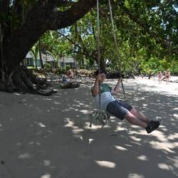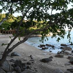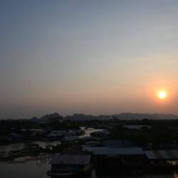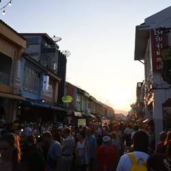 Nach einer Fahrt in einem Car mit indischem Touch (gepolsterte Wände und Decke plus bunte, bestickte nötige und unnötige Vorhänge) kamen wir in Khao Lak an. Oder besser gesagt an einer einzig langen Hauptstrasse, wo alles mögliche, vorwiegend für Touristen (Bars, Massagen, Restaurants, Supermärkte), hingepflastert wurde und an welcher wir nun bei tropischen Temperaturen entlangzottelten, bis wir in einer Seitenstrasse unser Hotel entdeckten. Dort gab es einen kurzen Kälte-tanken-Stopp bevor wir wieder die Hauptstrasse entlangzottelten, um eine Tauchschule zu finden, welche uns möglichst bald zu den Similan oder Surin Islands bringen würde. Leider hatten wir dieses Mal nicht so viel Glück und auch mit ca. 10km an der Hauptstrasse hin- und herlaufen, gab es keine Option mehr bereits morgen tauchen gehen zu können. Also hiess es eine Nacht verlängern in Khao Lak und am Freitag tauchen zu gehen. Nach langem Vor- und Nachteile abwägen, entschieden wir uns, unseren Tauchtrip statt zu dem uns mehrfach empfohlen, aber eher einer Wanderung gleichendem, "Richelieu Rock" zu den einem easy Spaziergang gleichenden dafür mit schöner Kulisse "Similan Island" zu machen. Die Hauptstrasse mehr als gesehen machten wir uns auf zum Strand. Und dieser liess sich mit kilometerlangen Sandbänken, wunderschönen Palmen, unzähligen Bungalow Strandbaren, dem Dschungel im Hintergrund inklusive Geräuschkulisse echt sehen. So genossen wir einen Sonnenuntergangspaziergang bevor wir uns in eines der vielen Restaurants setzten und uns durch weiteren leckeren Thaifood schlemmten.