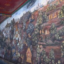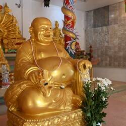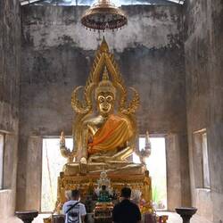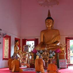 - Svens Erlebnisse: Zuerst versuchte er gemeinsam mit der Vermieterin telefonisch eine Zugverbindung zu buchen. Leider einmal mehr erfolglos. Da es im Internet aber Teilverbindungen gab, machte er sich nochmals auf zum Bahnhof. Und dann wieder zur Busstation, wo er gemeinsam mit etlichen Busfahrern auf Gestisch und Mimisch alle Möglichkeiten durchging. Leider zahlte sich sein Einsatz nicht aus und die Empfehlung blieb, dass wir es über Bangkok versuchen sollte. Nun hatte auch Sven endgültig genug und er machte sich auf zu einem Restaurant. Gestärkt radelte er dann noch zu zwei Tempeln und liess sich anschliessend einfach durch die Stadt treiben und tauchte in den Alltag der Locals ein.