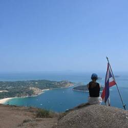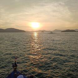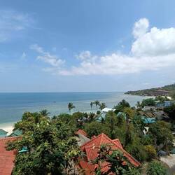 Neuer Tag, neue Abenteuer. Dafür wird aber eine gute Basis gebraucht: ein ausgiebiges Frühstück in unserem eigenem Appartment.😍 Da leider die Kaffeemaschine fehlt, mussten wir dann doch noch einen Abstecher in ein Café machen. Dafür mit wunderschöner Aussicht aufs Meer. Da wir nicht genug von dieser bekommen konnten, war unser nächstes Ziel, nach einem kurzen Abstecher zum süssen Fischerhafen von Chaloklum, ein Aussichtspunkt. Da wir dafür quer über die ganze Insel düsen mussten, nutzten wir den Umweg, um unsere Weiterreise zu organisieren. Dafür wollten wir uns in einer Reiseagentur beraten lassen. Irgendwie war diese nicht so hilfreich wie gedacht, vielleicht lag es auch daran, dass diese Agentur eigentlich nur Visas ausstellte. Wir wissen es nicht so genau... Also ab zum Hafen, wo wir feststellen mussten, dass momentan ziemlich viel ausgebucht ist, da die Thailänder gerade Ferien haben. So buchten wir einen teuren Transfer zur königlichen Strandbaddestination Hua Hin, zu welcher wir ursprünglich eigentlich nicht wollten. Naja Hauptsache wir kommen weiter... Nach diesem kleinen Dämpfer besorgten wir uns mit dem Aufstieg zum Aussichtspunkt ein Hoch. Zur anschliessenden Abkühlung machten wir uns auf zu einem der viele Strände, dieses Mal auf der anderen Seite der Insel und der Hoffnung nicht auf eine Wattlandschaft zu treffen. Wir hatten Glück und konnten sogar ein wenig Schnorcheln. Nichts im Vergleich zum Tauchen, aber zum Spotten von giftigen Meerestieren reichte es.😉 Nach faulem Herumliegen gingen es zurück auf unsere Seite, um den Sonnenuntergang zu bewundern. Da wir etwas spät dran waren, sahen wir nur noch den Schluss und so machten wir uns schon bald ans Abendessen.