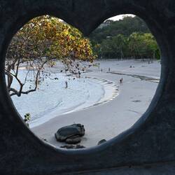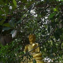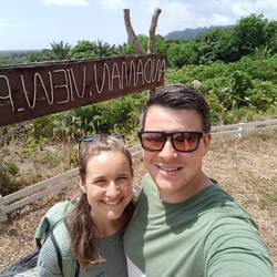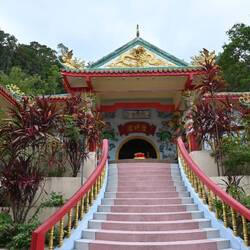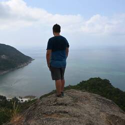 Heute machten wir uns auf auch noch die letzten Eckchen der Insel zu entdecken. Doch bevor wir unseren Entdeckungshunger stillten, mussten wir zuerst unseren richtigen Hunger stillen. Und wie macht man das am besten? Natürlich in einem gemütlichen Café mit einer idyllischen Aussicht auf einen See, mit köstlichen Wraps und Porridge sowie Cappuccino, begleitet von smoother Klarinettenmusik (naja der letzte Punkt hätte nicht unbedingt sein sollen, hier lebte sich ein Freizeitmusiker mit ich-spiele-an-schönen-Orten-um-mich-zu-entspannen mit Schlangenbeschwörer-Musik aus). Dann ging es los! Oder doch nicht so ganz, da Tamara noch eine kleine Shoppingtour dazwischenschaltete und in einem hoch esoterischen Laden ihre verlorenen Ohrringe ersetzte und ihre Garderobe mit einem schneller trockneden Bikni ergänzte. Besser ausgestattet als zuvor ging es dann zu einem chinesischen Tempel. Obwohl beide Nationalitäten teilweise den gleichen Glauben ausleben, sehen die Tempel total anders aus und die Frage des Tages blieb, warum der chinesische Buddha opulenter dargestellt wird. Auch dieses Mal wurden wir auf unserem Streifzug von Musik begleitet. Dieses Mal aber von Kindern, die lauthals irgendwo in der Ferne "Rock my Soul" zum besten gaben. Bei der Anfahrt hatten wir einen weiteren interessanten Ort erspäht und so machten wir noch einen kleinen Abstecher dorthin. Der Spot stellte sich als weiterer Tempel und Schule heraus und so crashten wir das Livekonzert der Kids, die wir vorhin gehört hatten. Das freute insbesondere das Lehrerherz von Tamara. Nachdem wir uns noch mit Lebensweisheiten von Dalai Lama eingedeckt hatten, düsten wir zu unserem nächsten Spot, einem Aussichtspunkt. Dachten wir zumindest... Es stellte sich dann eher als eine Irrfahrt mit mehreren Extraschlaufen heraus inklusive FKK 2.0. Auch brachten wir unseren Roller und seine Benzinreserven mit steilen Steigungen recht an den Anschlag, sodass wir an einer uralten verrosteten Zapfsäule nottankten. Irgendwann fanden wir den Viewpoint dann doch noch, bzw. den Parkplatz, denn der letzte Abschnitt konnte man nur mit eigener Muskelkraft zurücklegen. Der Aufstieg wurde aber mit einer wirklich tollen Aussicht belohnt. Als wir die deutschen Influenzer satt hatten, machten wir uns auf dem Rückweg. Unterwegs trafen wir jedoch auf einen Wegweiser Richtung Strand und so entschieden wir uns, nachdem uns ein extrem verschwitzter Aussie versicherte, dass dieser Weg auch wirklich zum Strand führte, den Abstecher einzubauen. Der Weg stellte sich als rechtes Dschungeltrekking heraus und wir waren extrem froh, das Ganze wiedereinmal gegen den Strom zu machen, vor allem als wir in die entgeisterten Gesichter, der Passanten, welche uns entgegenkamen, blickten, wenn wir ihnen leider mitteilen mussten, dass sie noch einen beschwerlichen Weg vor sich hatten. Am Strand angekommen genossen wir die lauwarme Abkühlung im Meer und ruhten uns mit Wellenrauschen-Kulisse etwas aus, bevor der weniger entspannende Teil unseres Ausfluges kam: zurück zum Roller. Also sich bei 36° 45min steil bergauf kämpfen. Und nein Tamara man kann diese Zeit nicht zum tiefgründige Gespräche führen nutzen, denn man hat keine Luft dafür... Wir Schweizer Bergziegen schafften es dann aber doch und nach dieser Anstrengung gönnten wir uns den Sonnenuntergang in einer Beachbar mit Moscow Mule und Bier. Obwohl der Sonnenuntergang wunderschön war, hatten wir Mühe uns auf ihn zu konzentrieren, da am Strand so viel lief, was genauso spannend zu beobachten war: Seeigel sammelnde Einheimische, Acroyoga betreibende Gruppen, Kugeln balancierende ekstatisch wirkende Typen neben Stangen schwingenden Jungs und Tücher jonglierenden Frauen, Feuershows... Und das Ganze wurde von Technomusik und Grasgeschmack begleitet (Hippie-Level Nr. 12). Völlig entspannt machten wir uns dann irgendwann nach der Sonnenuntergangsshow in ein Restaurant, um Znacht zu essen und den Abend ausklingen zu lassen.
