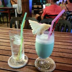 Den Zusatztag in Khao Lak nutzten wir für ein bisschen Sightseeing. Dafür nutzten wir unser neues Lieblingsfortbewegungsmittel den Roller. Nach einem sehr leckerem thailändischen Omeletten Zmorgen war unser erster Stopp ein weiterer buddhistischer Tempel mit Big Buddha. Danach ging es weiter zu einem kleinen Aussichtspunkt. Die Sicht war nicht atemberaubend, dafür war der Weg dorthin lustig.😉 Weiter ging es entlang irgendeiner Strasse durch den Dschungel. Und das war wohl eines unserer Thailand Highlights bis anhin: Weit und breit keine Touris, Häuser, in welchen wirklich Locals leben und keine Touris, Plantagen mit weidenden Ochsen, irgendwelche Echsen, welche über die Strasse flitzen, Eisvögel, winkende Kinder und wunderschöne Ecken in der Natur. Bei einem Stausee legten wir in einem unglaublich luxuriös wirkenden Café einen Stopp ein, wo wir die netten Kellnerinnen wohl etwas amüssierten, da wir nicht wussten, wie wir den fancy Drink zu trinken hatten.😅 Nach einem Wasserfall, der in der Trockenzeit leider kein Wasserfall ist, versuchten wir einen schönen Strandabschnitt zu finden. Leider waren die richtig schönen für die Ressorts reserviert. So hüpften wir halt bei den billigen Plätzen irgendwo ins seichwarme Meer. Zurück suchten wir ein Resti, was heute gar nicht so einfach war, da viele schon besetzt waren. So gab es zur Überbrückung halt einen Mojito an irgendeinem Strassenstand.🍹Als wir dann einen freien Platz fanden, bekam Sven ein rotes Curry das irgendwie eher gelb war und Gemüse enthielt, die stark nach Ananas aussahen. Hawaii Curry.^^ Den Abend liessen wir in einer Bar mit Livemusik ausklingen, wo Tamara den Sänger mit ihrer vielfältigen Liederkenntnis beeindruckte.😉