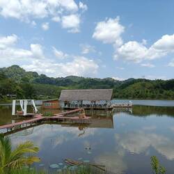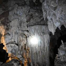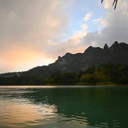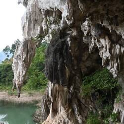Nach einer Nacht mit hüpfenden Affen auf dem Dach, hiess es Tagesrucksack packen und Zmorgen essend auf unseren Transfer zum Hafen warten. Der Taxifahrer war pünktlich, die Touris leider nicht... So starteten wir mit warten. Und mit der Verspätung brachten die Touris auch haufenweise Gepäck, was beim Fahrer und Guide zu Kopfgeschüttel und Tetris spielen führte. Die letzte Tourguidin musste dann sogar dem anderen Tourguide auf die Knie sitzen. Vollgestopft kamen wir am Hafen an, wo die nächste grosse Herausforderung auf uns Touris wartete: Tickets kaufen und zusammenbleiben. Bis das alle geschafft hatten, warteten wir halt mal wieder. Endlich alle beisammen, kam auch schon das nächste Warten, nämlich dass auf unser Boot, welches uns zu unserem auf dem See schwimmenden Bungalow bringen würde. Natürlich erhielten wir am Schluss das am vertrauenswürdigsten aussehende von allen...😅 Wir bewegten uns aber vom Fleck. Vorerst noch. Die Aussicht wurde mit jedem zurückgelegten Kilometer immer schöner und das Motorengeräusch immer fragwürdiger. Und der Fahrer, welcher während der vollen Fahrt am Motor herum mechte, bestärkte unser Vertauen in das Boot nicht wirklich. Und so kam irgendwann auch der erste Notstopp. Mit etwas manueller Nachhilfe und Diesel nachfüllen (oder eher danebenschütten) ging es dann aber weiter. Dieses Vorgehen wiederholten wir dann noch einige Male bis wir in Sichtweite unserer Unterkunft tatsächlich strandeten. Da half nur noch ein anderes Boot weiter und so kamen wir mit umsteigen dann endlich auf der schwimmenden Hotelanlage an, wo es ein spätes Mittagessen gab. Davor bezogen wir unsere Unterkunft. Zum Einchecken musste man dafür angeben, wie viel man bezahlt hatten. So liefen wir zuerst an sehr luxuriösen Appartements vorbei und nach und nach nahm der Luxus ab, bis wir ganz zuletzt zu unserer Preisklasse kamen, welche Bambushütten mit einer Matratze am Boden beinhaltete. Nach etwas Freizeit, die wir mit Baden und Kanufahren verbrachten, ging es mit demselben Boot (juuhuuui...), das in Zwischenzeit irgendwie repariert wurde auf zum Dschungeltrekking. Naja eher ein an Touristen angeoasster Spaziergang. Wir wissen nun aber, wie wir nur mithilfe von Bambus im Dschungel überleben können. Wir erfuhren auch sonst noch Spannendes, aber das haben wir leider nicht verstanden. Vom Dschungel ging es in eine Höhle und irgendwie hat uns unser Guide wohl liebbekommen, denn wir durften bei ihm hinten auf dem Boot mitfahren. Nach Stalagniten und Stalagtiten bestaunen und Fledermäusen suchen, ging es dann zurück zur Unterkunft. Gerade richtig, denn es begann zu gewittern. Bevor wir ganz verregnet wurden, entdeckten wir aber sogar noch Affen. Nach dem Abendessen kriegten wir heimlich noch ein Uptade und so durften wir im Dunkeln unsere Bambushütte gegen ein wertigeres Häuschen inklusive Bad eintauschen. Da der Strom ziemlich bald abgestellt wurde machten wir uns bald schon ab ins Bett.