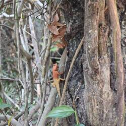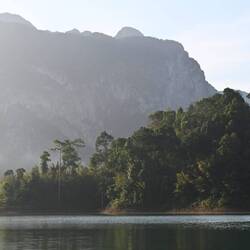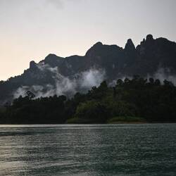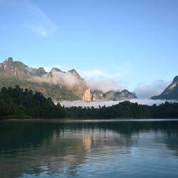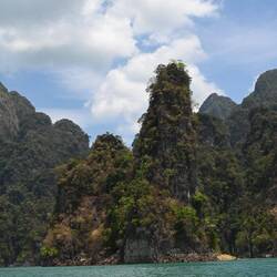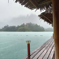Da die Abfahrt unseres Buses nach Khao Sok verschoben wurde, hatten wir am Morgen sogar so viel Zeit, dass wir auf der Strecke zum Busstopp noch Zmörgelen gehen konnten. Dabei landeten wir in einem Café wie aus dem Möbel Pfister Prospekt und das angebotene Essen war genauso fancy. So gab es auch für Sven eine super-healthy-instragram-taugliche Açai-Bowl. Danach natürlich super fit machten wir uns auf zum Busstopp, wo schon andere Backpacker warteten. Wir waren nun also langsam aber sicher auf der typischen Backpackerroute angekommen. Da der Bus schon ziemlich voll war, verteilten wir uns halt auf die noch letzten verfügbaren Plätze. Beim nächsten Stopp, als der Bus wirklich voll war, wurden nochmals fast so viele Einheimische mitgenommen, es gab ja auch noch Stehplätze und Ablägeflächen. Wir erbarmten uns einer alten Frau, für welche niemand aufstehen wollte und so sass Tamara irgendwann wie die Einheimischen auf dem Boden. Die Fahrt war zum Glück nicht allzu lang und so kamen wir in Khao Sok Village an, das Eingangstor zum gleichnamigen Nationalpark. Unsere gute Tat zahlte sich wohl gleich aus, da wir von einem Taxifahrer erwartet wurden, der uns gratis zu unserer Unterkunft brachte. Dort konnten wir gleich unsere Tour zum Chao-Laan-See buchen, das eigentliche Highlight des Parkes. Bei der Programmplanung für die restliche Zeit gingen unsere Bedürfnisse etwas auseinander. Tamara hätte am liebsten eine Wanderung von den Touris weg in den Dschungel gemacht und Sven präferierte eher das kulinarische Angebot. Kompromissbereit wie wir sind ging es zuerst auf Erkundungstour, wie wir wohl mit wenig Aufwand schnell in den Dschungel kamen. Die einzige Alternative war ein verwitteter Wegweiser mit der Aufschrift "Viewpoint (only with guide)" und "Swimming Pool". Vernünftig wie wir sind nahmen wir natürlich den Abzweiger zum Swimming Pool. Dabei kamen wir an einem sehr alternativem Hippie Campingplatz vorbei und der Pfad wurde immer abenteuerlicher. Irgendwann fanden wir sogar tatsächlich einen Swimmimgpool, der gehörte jedoch zi einem Luxusressort und war umzäunt. Da der Weg immer weniger nach Weg aussah, drehten wir um. Dabei trafen wir immerhin auf eine Echse. Denn ausser ein paar Schmetterlingen, hatten wir leider noch nicht so wahnsinnige exotische Tiere angetroffen. Zurück im Dorf snackten wir ein Süsssauer bevor wir so richtig verschifft wurden. Wir befanden uns nun ja im REGENwald. Zeit zum Weiterplanen also. Als der Regen irgendwann ausgeregnet war, war schon wieder Essenszeit und wir fanden ein tolles Restaurant, wo man verschiedene Curries auf einmal versuchen konnten. Dieses Mal wagten wir uns sogar an die 4 Chillis. Die Köchin lachte beim Schöpfen nur. Aber auch diese Schärfe überlebten wir recht gut und nach einem Verdauungsspaziergängchen ging es ab ins Bett, voller Vorfreude auf unsere Tour am nächsten Tag.