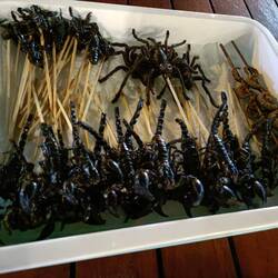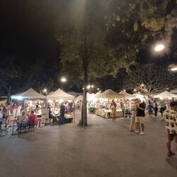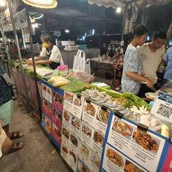Nach genug Sightseeing wollten wir uns bei einem Nachtmarkt treffen. Leider war dieser infolge Songkran natürlich nicht geöffnet. Zum Glück gab es daneben gleich eine Bar, welcher sich eher als Nachtclub herausstellte und es war ziemlich spannend zu beobachten, wie sich die Kellnerinnen und Tänzerinnen für den nächtlichen Betrieb rüsteten. Da es in jeder grösseren Stadt mehrere Nachtmärkte gibt, machten wir uns anschliessend einfach auf zum nächsten und probierten uns durch das lokale Angebot. Müde vor allem vom nervenaufreibenden Planen machten wir uns danach ab in die Federn.