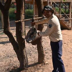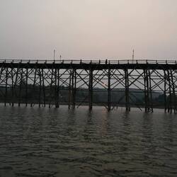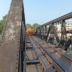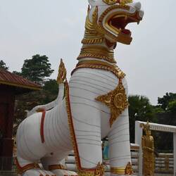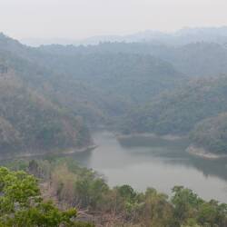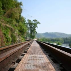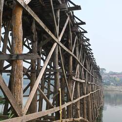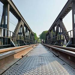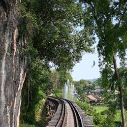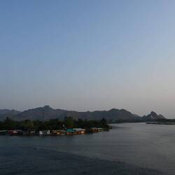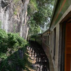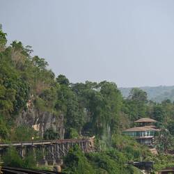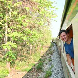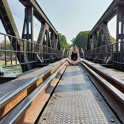 Weiter ging es zu der wohl längsten Sehenswürdigkeit Kanchanaburis: der Death Railway. Ein Abschnitt davon hatten wir gestern bereits bei der River Khaew Bridge bewundert, nun stoppten wir aber beim wohl spannendsten und somit auch beliebtesten Abschnitt: der hölzernen Tham Krasae Brücke. Sogar einen kleinen obligaten Tempel in einer Höhle gab es gleich neben den Gleisen. Nachdem wir uns das Ganze zu Fuss angeschaut hatten, legten wir ein Stück mit der Eisenbahn zurück. Sehr authentisch in der 3.Klasse. Nebst der schön eindrücklichen Fahrt über die Brücke, faszinierte uns die ländliche Umgebung durch welche wir mit dem Zug fuhren beinahe noch mehr. Nach ein paar Haltestellen wartete dann wieder unser luxuriöser Kleinbus mit Aircon auf uns und es ging zu unserem letzten Stopp der River Khaew Brücke. Da wir diese, wie erwähnt, bereits bestaunt hatten, legten wir nur einen kurzen Stopp ein und entschieden uns, einem bulgarischen Pärchen anzuhängen, welches um einen extra Stopp beim Skywalk gebeten hatte. Eine moderne Glasplattform, die hoch über dem River Khaew thronte. Die Aussicht war schön, konnte aber nicht von allen genossen werden. Und nein es war keiner von uns der weinend vor Höhenangst sich ans Geländer klammernd da sass... Romantisch begleitet vom Sonnenuntergang schlenderten wir am Fluss zurück ins Zentrum, vorbei an einem riesigen, eher einem Freizeitpark gleichenden Tempelanlage. Bis die romantische Stimmung jäh von Wachhunden unterbrochen wurde, die ihre Aufgabe sehr ernst nahmen... Zurück in Zentrum assen wir bei einer Kochschullehrerin Abendessen und liessen den Abend mit lokalem Craftbeer ausklingen.