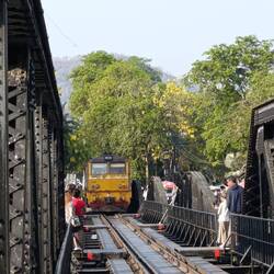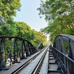 On the road again. Von der Unterkunft ging es zu Fuss zum riesen Einkaufszentrum aka Minivan-Station. Dort angekommen, kümmerte Sven sich in Gentlemenmanier ums Gepäck während Tamara sich im riiieeesen Supermarkt auf Frühstückssuche machte. Die grösste Herausforderung dabei, man glaubt es kaum, grosse, gekühlte Wasserflaschen finden. Kulinarisch ausgestattet ging es dann Richtung Kanchanaburi, auf dem Highway, vorbei an improvisierten Strassenständen, auf die Strasse hin offene Häuser mit Hängematten und Pavillons, schon kitschig wirkende Blumen in allen erdenklichen Farben, Bananentrocknungsanlagen und riesigen Tankstellen. Die Temperaturen klettern noch mehr auf dem Thermometer rauf, die Luft wird stickiger und die Sicht schlechter. Vorboten der burning season im Norden. Als wir am Busterminal in Kanchanaburi ankamen und uns die Hitzewand entgegenschlug, einigten wir uns ziemlich schnell ein Taxifahrer anzuheuern. So ging es bequem mit Fahrtwind zu unserer temporären Bleibe. Nach etwas Kühle tanken, machten wir uns auf zur berühmten Brücke am Fluss Kwai. Schon etwas befremdlich über die Gleise zu spazieren. Irgendwie erwartet man, dass jeden Moment die Polizei erscheint oder uns die Eltern ausschimpfen.😉 Auch etwas Betroffenheit schwingt dabei mit, da die Brücke im zweiten Weltkrieg von Tausenden Kriegsgefangenen errichtet werden musste und etliche dabei ihr Leben lassen mussten... Unser Timing stellte sich als perfekt heraus, da sogar noch ein Zug vorbeituckerte als wir auf der Brücke waren. Nach einem Ice Tea (für Kaffee ist es sogar uns zu heiss) machten wir uns auf zur Hauptstrasse, da Reiseführerin Tamara irgendwo gelesen hat, dass es einen lokalen Bus gibt. Wir konnten auch wirklich einen Bus anhalten, nur war das sicher nicht der innerstädtische Bus, sondern der Fernbus zum Erawan Nationalpark. Egal, entweder hatte der Busfahrer einfach Mitleid mit uns gezeigt oder seine Tageseinnahmen mit uns aufgebessert. Auf alle Fälle kamen wir zu unserem Ziel dem Busterminal, wo wir auf Gestisch, Mimisch und Googletranslatisch versuchten unsere nächste Verbindung klar Schiff zu machen. Trotz unserer Bemühungen wurden wir auf den Tag unserer Abreise vertröstet. Let's see how that will work... Als Trost fanden wir neben dem Busbahnhof etliche Garküchen, wo wir uns auf die gleichen Sprachen wie zuvor am Ticketschalter ein Überraschungsmenü bestellten. Gut, lecker, sehr günstig und sogar ohne unerwünschte Nebenwirkungen.😉 Als wir gemütlich am Essen waren, rief uns das Reisebüro an, bei welchem wir versucht hatten eine Tour für morgen zu buchen und informierte uns darüber, dass sie noch zwei weitere Teilnehmer gefunden hatten und wir nun die Tour auch tatsächlich durchführen konnten. Nebensaison oder heisses Wetter lässt grüssen.😅 So düsten wir wieder mit einem Taxi zurück, um die Tour zu buchen und anschliessend zum nächsten Nachtmarkt zu gehen und uns weiter durch das kulinarische Angebot zu schlemmen.😋 Um ein paar Geschmackserlebnisse reicher machten wir uns wieder auf in unsere Unterkunft und ab in unsere Betten.Читать далее