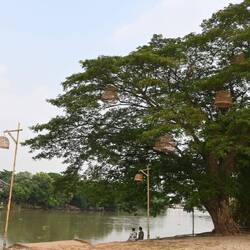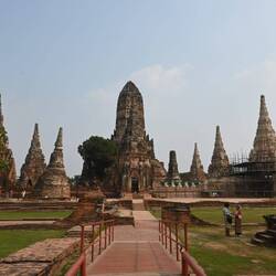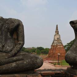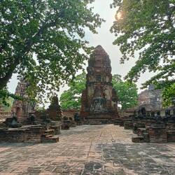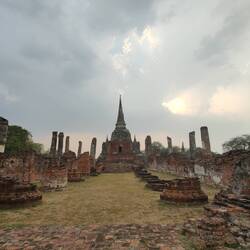 Heute besorgten wir uns für einmal ein anderes Transportmittel, ein fahrbarer Untersatz mit manueller Antriebskraft oder simpel ein Velo. Auf unseren klapprigen Eingängern machten wir uns dann auf zum Bahnhof. Zuvor bauten wir aber einen Frühstücksstopp bei einer Garküche mit mango sticky rice ein und einem hippen Café (ja die Kaffeeszene ist bei den Thailänder definitiv angekommen und sie lieben sie einfach mit viiieeel Zucker). Vom salzigen Jok gestern machten wir eine 180° Wende zu dem sehr süssen Milchreis mit Kokoskondensmilch und Mango. Gemein haben die zwei beliebten Frühstücksklassiker nur eins: Reis. Nach einer Portion waren wir mehr als voll und unsere Bauchspeicheldrüse musste wohl den ganzen Tag hart arbeiten... Da der Bahnhof gegebüber des Flusses lag und die Ayutthayaner irgendwie kein Flair für Fussgängerbrücken haben, mussten wir für 2min Fahrt eine Fähre nehmen. Am Bahnhof angekommen ging unsere Odyssee weiter: Keine Verbindungen mehr gefühlt nirgendwo hin. Also wieder mit der Fähre zurück zu unserem zweiten Ass im Ärmel, der Busststation. Das Ass war leider auch kein Ass und es wurde uns geraten einfach auf Bangkok zu gehen. Also wieder zurück auf Feld 1. Verzweifelt versuchten wir anschliessend in einem Supermarkt mit Aircon online alle möglich erdenklichen Verbindunskombinationen aus. Wir fanden sogar einige, aber das Glück war nur von kurzer Weile, denn sobald wir draufklickten, hiess es wieder ausverkauft. Um dem Supermarkt-Personal nicht mehr im Weg zu stehen, gingen wir zurück in unser Zimmer, wo wir irgendwann sogar bemüht von unserer Gastgeberin unterstützt wurden. Irgendwann war bei Tamara echt die Luft raus, Sven zeigte hier noch etwas mehr Biss, also entschieden wir unser Programm entzwei zu teilen. Sven versuchte weiterhin die Weiterreise zu organisieren, während Tamara bereits die weiter entfernten Tempel anschauen gehen würde.