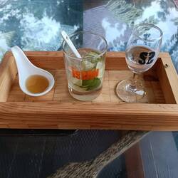 Kurz vor Nong Khai machten wir einen Stopp bei einer kleinen, aber feinen Rumdistillerie. Leider hatte sie geschlossen, da wir aber schon da waren, servierten sie uns extra ein Tastingset. Weiter ging es zu einem Markt, der rund um ein abgestelltes Flugzeug, gebildet wurde. Die Atmosphäre war recht cool und so gönnten wir uns einen Drink bevor wir direkt in ein Restaurant am Mekong düsten, um mit schöner Aussicht Abendessen zu geniessen.