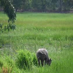 Am nächsten Tag mussten wir uns langsam Richtung Bangkok aufmachen, da von dort schon bald unser Flieger nach Siem Reap gehen würde und wir immer noch etwas geschädigt von unserer langwierigen Anreise nach Nong Khai kein Risiko eingehen wollten. Da unser Zug erst um den Mittag abfuhr, konnten wir in Ruhe packen, frühstücken und noch durch den lokalen Markt schlendern. Frühstück gab es heute in einer deutschen Bäckerei, wo wir schweizerischen und deutschen Stammtischproleten beim Mötzeln zuhören konnten. Nachdem wir uns mit Snacks eingedeckt hatten, fuhren wir mit dem Tuktuk (der Fahrer hatte mit uns wohl sein Tagesgeschäft gemacht) zum Bahnhof. Der Zug kam mit 45min Verspätung aber doch noch irgendwie mehr oder weniger pünktlich (?) an und das Gedränge um einen Sitzplatz begann. Leider landeten wir mit unserem nicht gerade einen Glücksgriff, da wir uns direkt unter dem Dieselmotor befanden, der sich wie ein Düsenjet anhörte und jedes Gespräch unmöglich machte sowie ein nicht funktionierender Ventilator unsere Misere verschärfte. Irgendwann wechselten wir unsere Plätze, was unsere Fahrt wesentlich aufwertete. Auch hier wurden wir Farangs mit grossen Augen angeschaut und obwohl Ausländer sich wahrscheinlich nur wenig in die dritte Klasse zwischen die Einheimischen verwirren, ist es trotz Backofentemperaturen schon ein Erlebnis. So gehen immer wieder Händler mit gegrillten Hühnchen am Spiess und sonstigen Snacks umher, während am Fenster schöne Landschaften und interessante Dörfer und Städte vorbeiziehen. Mit gut einer Stunde Verspätung kamen wir einmal mehr spät und im Dunkeln in Nakhon Ratchasima, unserem strategisch gut gelegenen Durchreiseort nach Bangkok, an. Bevor wir ins nahegelegene Hotel liefen, kauften wir noch rasch (ja und dieses Mal ging es erfreulicherweise wirklich rasch :)) unsere Tickets nach Bangkok. Sobald wir im Hotel eingecheckt hatten, machten wir uns gleich daran ein Restaurant zu finden, das nah war und noch geöffnet war. Gar nicht so einfach und so fanden wir uns schon wieder in einem riesen Einkaufszentrum wieder. In diesem grossen Labyrinth fanden wir tatsächlich noch was, die Blicke des Personals sprachen aber Bände als wir uns hinsetzten. Als um 21 Uhr alles geschlossen wurde, wussten wir dann warum. Also assen wir in Rekordtempo, sodass das Personal nur 5min Überzeit wegen uns machen musste. Nach dem Snacks kaufen im 7 Eleven, was sich so langsam als "vor-dem-Schlafengehen-Ritual" bei uns eingeschlichen hat, hüpften wir dann auch schon in unser Queensizebett.