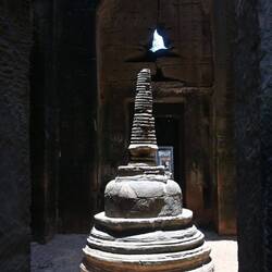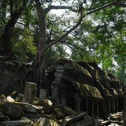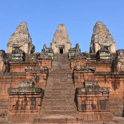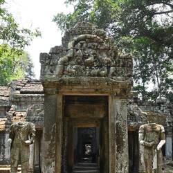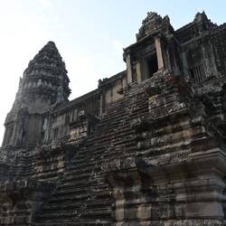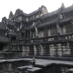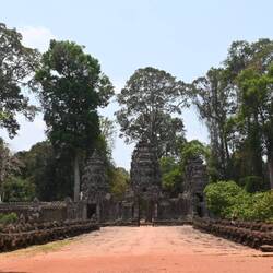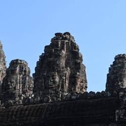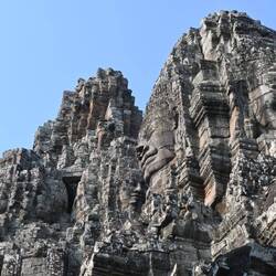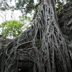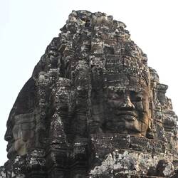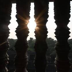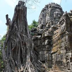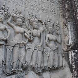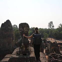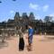 Am nächsten Tag ging es richtig früh los. Und nein nicht "Sven und Tamara früh" sondern richtig früh. Denn wir taten uns echt die Sonnenaufgangstour an. Warum wir dafür noch extra zahlten, war uns im Moment als der Wecker abging auch ein Rätsel... Noch völlig verschlafen, wurden wir in der Rezeption von unserem persönlichen Tuktuk-Fahrer Robean und dem freundlichen Hotelpersonal mit einem breitem Lächeln und gut gepackten Frühstückspaketen begrüsst. Im Stockdunkeln ging es dann zu unserem ersten Stopp dem Ticketbüro. Dank low season mussten wir bei den Ticketschaltern auch gar nicht anstehen und so hatten wir richtig schnell unsere personslisierten Tickets mit verpeilten Fotos drauf in den Händen. Beim angrenzenden Coffeeshop war die Schlange etwas länger.^^ Nachdem wir das beliebte Heissgetränk ergattert hatten, düsten wir mit Robean zu DEM Wahrzeichen Kambodschas: dem Angkor Wat. Auf dem Weg dorthin genossen wir auf der ruckeligen Fahrt unser Frühstück aus der Tüte. Eier mit gezuckertem Pfeffer hatten wir also noch nie zuvor... Gut vorbereitet kamen wir beim Eingang zum Angkor Wat an und machten uns mit etlichen Touris auf zum Wasserbecken mit der besten Sicht auf die Haupttürme und den Sonnenaufgang. Und dann hiess es warten bis das Schauspiel seinen Lauf nahm... Langsam färbte sich der Himmel in allen möglichen Rottönen, doch die Sonne selbst wollte und wollte nicht in die "perfekte" Position rücken und so gaben wir es irgendwann auf und erkundeten stattdessen das eindrückliche Bauwerk von allen Seiten und kamen aus dem Staunen nicht mehr hinaus. So viele Details, so filigran, so systematisch und geometrisch aufgebaut, so... einfach wow! Geschichte zum Anfassen. Wir waren so begeistert, dass wir etwas die Zeit aus den Augen verloren und sogar zu spät zu unserem Treffpunkt zurückkamen, wo Robean bereits wartete, um uns zu den nächsten Kunst- ääh Bauwerke zu bringen. Nach Angkor Wat besuchten wir noch einige andere Tempel des kleinen Circuits: Bayon (unser kleines persönliches Highlight, da cool, weil egal wo man hingeht, man von einem riesigen Steingesicht angegrinst wird), Baphuon (der etwas an einen Inkatempel erinnert und dessen riesen Treppe man raufklettern kann (ein angenehmes Trittverhältnis kannten sie wohl noch nicht damals...) und vor welchem uns ein Ticketkontrolleur unbedingt ablichten wollte, da er Freude an unserer Kamera hatte^^), Ta Phrom (der tomb raider Tempel, eindrücklich, aber zu viele Touris) und zuletzt Banteay Kdei (süss im Vergleich zu seinen grossen Brüdern). Robean war von unserer Ausdauer in Tempelwatching beeindruckt, so konnte er nicht glauben, dass wir trotz der enormen Hitze immer noch mehr sehen wollten. Nach 5 Tempeln hatten wir dann aber auch genug und freuten uns riesig auf unser Mittagsschläfchen. Sven hatte darin etwas mehr Ausdauer und so machte sich Tamara irgendwann ab in den (seichwarmen) Pool. Als auch Sven wach war, machten wir uns auf in einen Supermarkt, wo Tamara wahnsinnig happy war als sie Reiswaffeln entdeckte. Sven freute sich eher über die Bierauswahl. Wir waren so fasziniert von dem riesen Angebot, dass wir fast den Transfer in die Stadt verpassten. Da wir schon genügend Sightseeing hatten vom Morgen, schlenderten wir einfach noch etwas durch den alten Markt und bestaunten die exotische Ware, welche dort angeboten wurde (bspw. Schnaps mit eingelegter Schlange) und landeten in der Pub Street schlussendlich in einem süssen Kunstcafé, wo wir mit unserem Bier und Mocktail wieder lokale Hilfsprojekte unterstützten. Tamara staunte nicht schlecht, als sie in der Getränkekarte einen Cocktail mit ihrem Namen entdeckte. Nach dem Apéro machten wir uns auf in ein Khmer Restaurant und probierten weitere lokale Speisen. Mit dem Tuktuk düsten wir dann wieder in unser Hotel, wo wir müde ins Bett fielen und von den vielen Tempeln träumten.