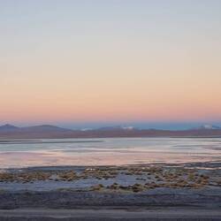 Le soleil commençant à baisser en intensité, il est temps pour nous de partir dans notre auberge. On y arrive un peu avant le coucher de soleil exprès. En effet, juste devant l'auberge, il y a des termes. On va donc profiter du coucher de soleil dans les termes avec vue sur un lac salin (spolier : c'est beau). Pendant 2h, on se prélasse dans une eau à 38 °C (alors qu'il fait 5 dehors), en discutant avec nos amis centraliens rencontrés la veille.