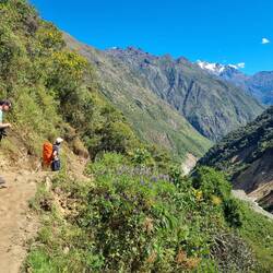 On commence la journée avec 800 mètres de dénivelés positifs vers un col à 4650 m en dessous du Salkantay (une montagne impressionnante de plus de 6300 m de haut qui n'a jamais été gravis). Pour les 2 premières heures de la journée, on aura donc vue sur cette magnifique montagne.
