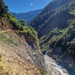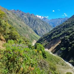 Une fois le col passé, la journée est loin d'être fini puisqu'il nous reste une descente interminable de 13 km mais surtout 1800 de dénivelé negatif. Après avoir manger notre pique nique à mi descente, le décor change totalement. On passe de la haute montagne avec des glaciers à une zone montagneuse pratiquement tropicale. C'est super chouette ce changement de décor. On suit ensuite toute la descente une rivière bien virulente jusqu'au petit hameau de Chaulley où nous dormirons ce soir.
