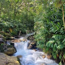 On finira la descente en un peu plus d'une heure et après avoir traversé un pont et marché quelques minutes sur du plat, on rattrape les filles, l'occasion de se mettre à l'ombre et de boire un coup.