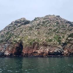 En faisant le tour de l'île, le capitaine nous fait même une "surprise" qu'il ne fait pas souvent apparemment : il rentre dans une petite grotte avec son bateau où des lions de mers se reposent au fond. Il entre d'abord en marche avant mais on ne peut rien voir car on est à l'arrière du bateau. Alors il essaie de rentrer en marche arrière mais avance 30 cm de l'arrière du bateau avant de repartir. Chouette, on aura pas vu grand chose.