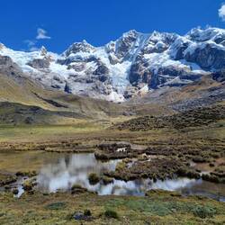 On se remet ensuite en route pour une courte distance, 2,5 km, avant de rejoindre le campement Huayhuash, bien pris d'assaut par les différentes agences qui ont déjà posée leurs tentes et pris les meilleurs spots.