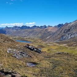 On se remet en route car bientôt, une montée de plus de 600m nous attend pour atteindre un col à 4800m d'altitude et passer dans l'autre vallée. On se met donc en route et on arrive, au pied de la montée, derrière un groupe d'israéliens qu'on dépassera dans la montée avant d'arriver, à moitié du chemin à un mirador Tres Lagunas qui donne une super vue d'ensemble sur la vallée. Après un peu de repos, des photos prises et une barre de céréales engloutie, on se remet en marche. Il reste 300m de D+.