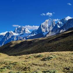 Nous croisons en chemin deux français, évidemment eux aussi issus d’école d’ingénieur, et que nous côtoierons tout au long du périple. Pendant les six heures de marche qui suivent, nous avons la chance d’observer un glacier aussi magnifique qu’imposant, non sans oublier de payer une taxe de passage à chaque mur de pierres franchi, symbole du passage dans une nouvelle communauté. Outre la peur de nous retrouver sans un sou au milieu de l’expédition, la nuit tombante nous fait hâter le pas jusqu’au campement de base du premier jour, abritant d’ores et déjà une bonne dizaine de tentes d’agence de voyage (la plupart des touristes effectuent ce tour à l’aide d’une agence qui fournit tentes et mules porteuses, utiles pour bien manger et surtout éviter la douzaine de séances d’ostéopathe nécessaires pour rétablir le dos de ceux portant toutes leurs affaires). Il fait quasiment nuit et nous trouvons un emplacement près d’un regroupement d’Israëliens, au-dessus d’un très joli lac.