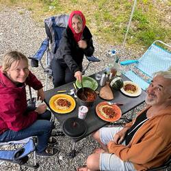 Die ganze Nacht hatte es ziemlich heftig durchgeregnet. Katrin war total abgesoffen in ihrem Spielzeugzelt. Ich habe die ganze Nacht nicht gut geschlafen, Zum einen, weil der Regen ziemlich hart aufLæs mere