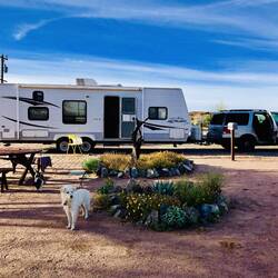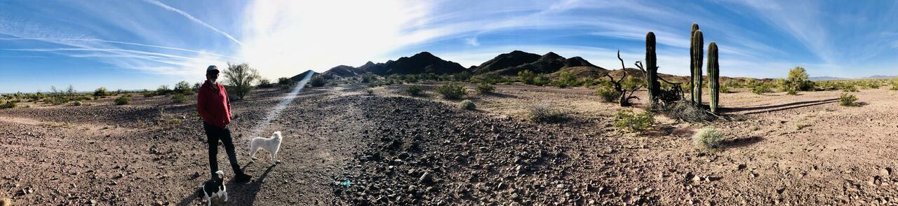 Ich bin damals mit der Campingwärtin Pepper morgens in die Wüste mit den Hunden gelaufen und sie hatte ein Gewähr als Schutz vor den Coyoten dabei. Einer lieg auch eine Weile parallel mit uns. Ich kann mich noch gut an diesen Walk erinnern.