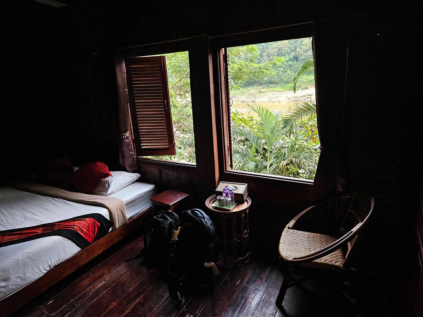 Une photo de ma chambre, avec vue sur le Mekong