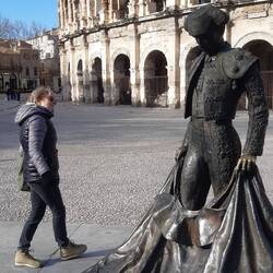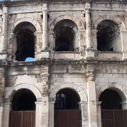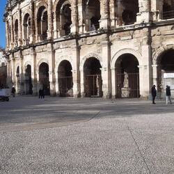 Ausflug nach Nimes, Besuch der alten Arena. Sonne pur, dazu leider wieder Wind.