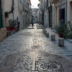 Mistral, eiskalter Wind aus dem Norden, bei strahlender Sonne. Enge Altstadt mit vielen kleinen Läden, toll zum Schlendern, ... wenn nur der Eiswind nicht wäre.
