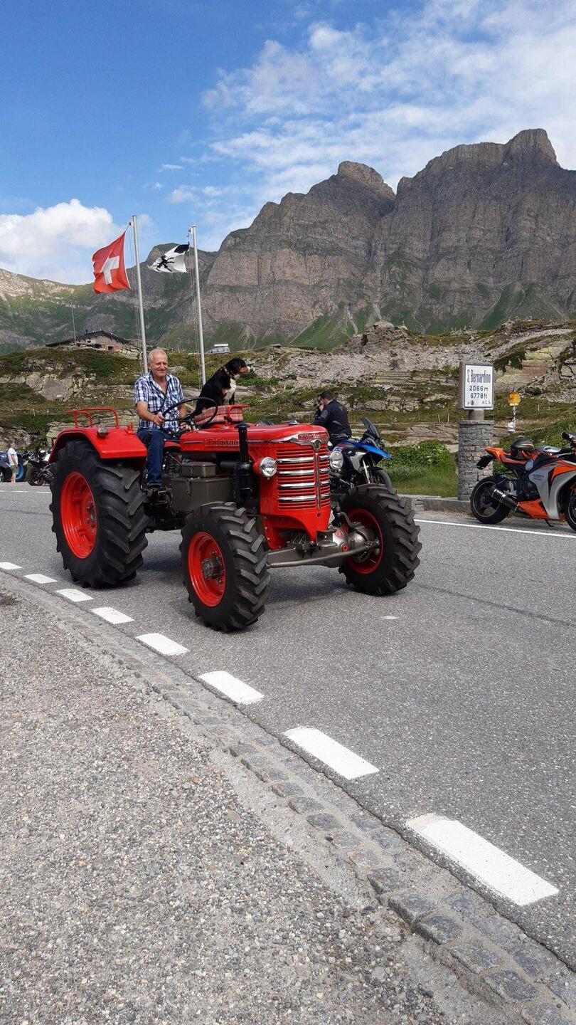 Fer Agosto in San Berardino. Alles voll mit Menschen und alten Hürlimann Traktoren.