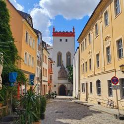 Zum Glück gibt es auch eine Fußgängerzone, da das Kopfsteinpflaster sehr laut ist.