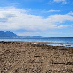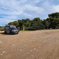 Trotz Regen übernachten wir heute am Elaia Beach.