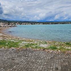 Hier haben wir bessere Aussicht, als zwischen den Bäumen auf dem letzten Campingplatz und warten mal das Wetterle ab.