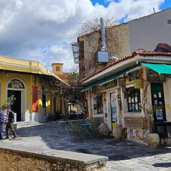 Überall Kaffees, Tavernen an einer langen breiten Flaniermeile.