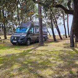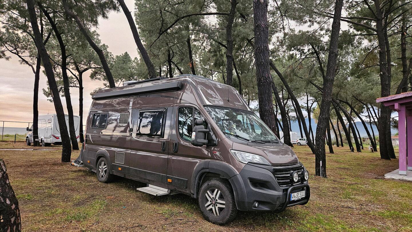 Da wir heute nur in Regenwolken schauen mussten und nicht die ganze Mani verpassen wollen machen wir einen Stopp und warten mal ab.