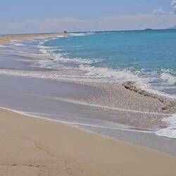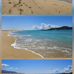 Der herrliche breite Sandstrand lädt zum spazieren gehen ein.