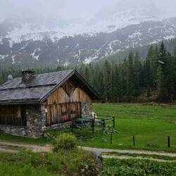 Heute 4 Grad und 100 % Regen auf dem Karerpass.