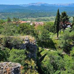 Kleiner Campingplatz zwischen den Bergen mitten im Ort Omis.