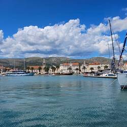 Neuer Oaseplatz auf der Insel Ciovo. Trogir ist mit einer alten Klappbrücke mit der Insel verbunden.