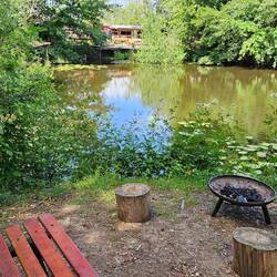 Der Alpakahof stellt 3 Stellplätze für 8€ die Nacht direkt am See für WoMo zur Verfügung.