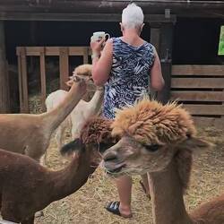 Haben hier ihre eigne Zucht und haben auch viele Tiere gerettet, vom Zirkus oder Leute die ihr Alpaka 2 Jahre in einen dunklen Schuppen gesperrt hatten.