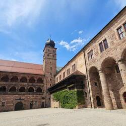 Hoch über Kulmbach liegt Plassenburg aus 1260 wurde 1559 wieder aufgebaut da Sie 1554 vollständig zerstört wurde.