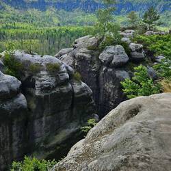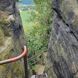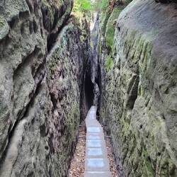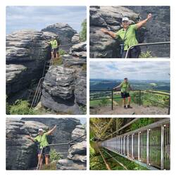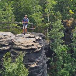 Rund 10 km Bergauf und Berg runter über den Lichtenhainer Wasserfall bis zum Kuhstall hoch das ist ein grosses Felsentor durch den Wald daneben ist die Felsspalte mit der Himmelsleiter, einenBaca lagi