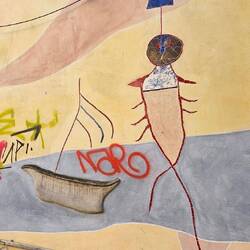 Überall versprühte Hausfassaden zugeklebteBaca lagi