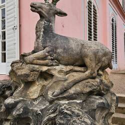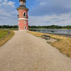 Bei dem Fasanenschlösschen befindet sich sogar ein Leuchtturm am See.