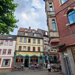 Viele alte Häuser. Das Rathaus ist der Knaller. Abendspaziergang während einem Regenschauer in Fulda.
