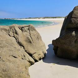 Roc'h pelguent sehr schöne Landzunge bei Ebbe kann man zum Leuchtturm de I'lle Vierge laufen , er ist mit 383 Stufen der höchste Europas