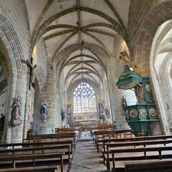 Eher ein Durchfahrtsdorf, da heute Sonntag war haben wir nicht in die Kathedrale geschaut. Sind nur mit dem Fahrrad durch die Stadt auf dem Weg nach Roscoff an der Küste entlang.