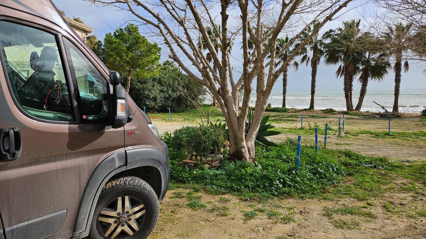 Ein privatgeführeter Stellplatz am Kite u. Surfstrand hinter Licata.