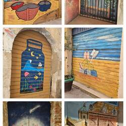 Schöne Bilder auf Tor und Türen.